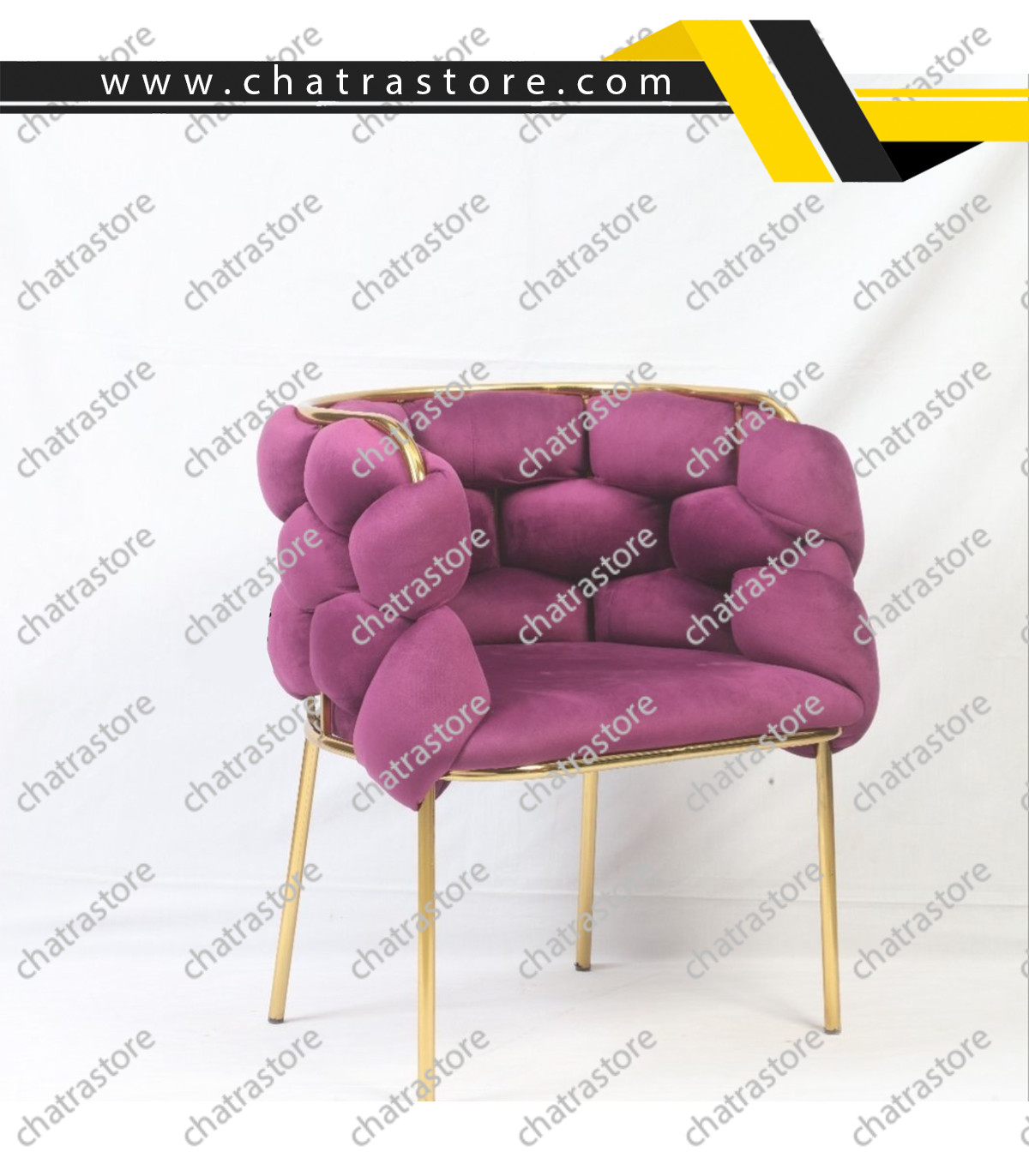 کفی و پشتی صندلی از فوم فشرده با روکش مخمل یا چرم مصنوعی باکیفیت ساخته شدهاند که علاوه بر لطافت و راحتی، دوام بالایی دارند. پایههای فلزی مقاوم با آبکاری براق (طلایی یا کروم) ظاهری شیک و امروزی به صندلی بخشیدهاند.