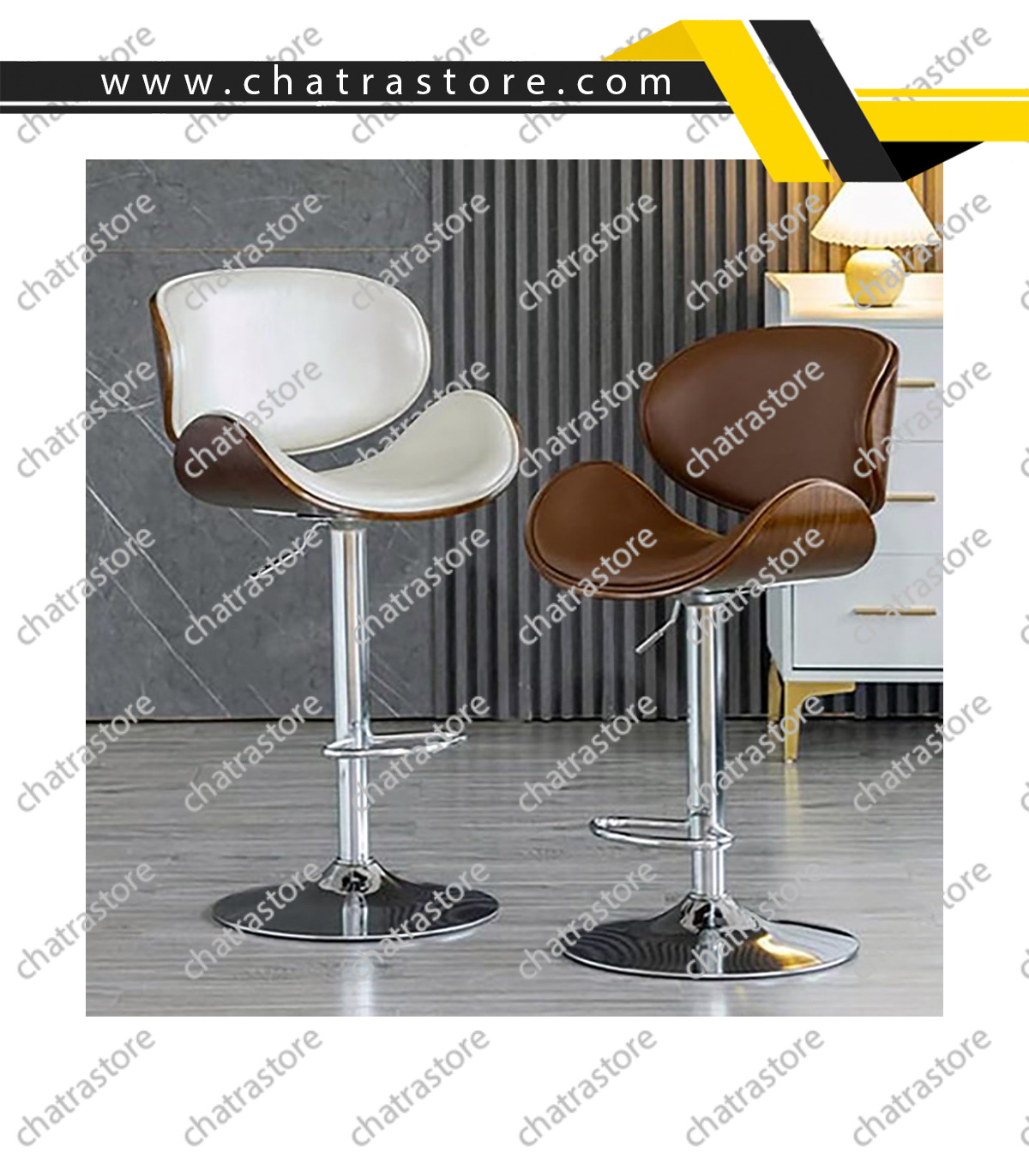 صندلی بار NOVA مدل آرال با قابلیت تنظیم ارتفاع و چرخش 360 درجه. انتخابی مدرن و شیک برای بارها و اپنها. قابل سفارش با چرم و پارچه در رنگهای مختلف.
