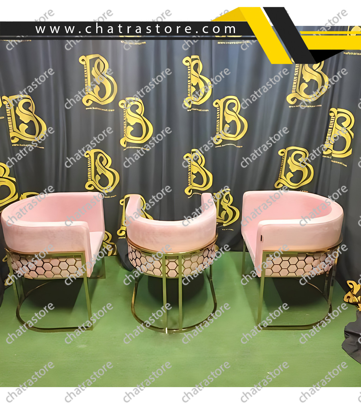 پایههای فلزی با طرح ششضلعی زنبوری و رنگ طلایی یا کروم، جلوهای چشمنواز و مجلل ایجاد میکنند. این صندلی بهخاطر طراحی مستحکم و استفاده از فوم فشرده با روکش مخمل یا چرم مصنوعی، هم راحتی و هم دوام بالایی دارد.