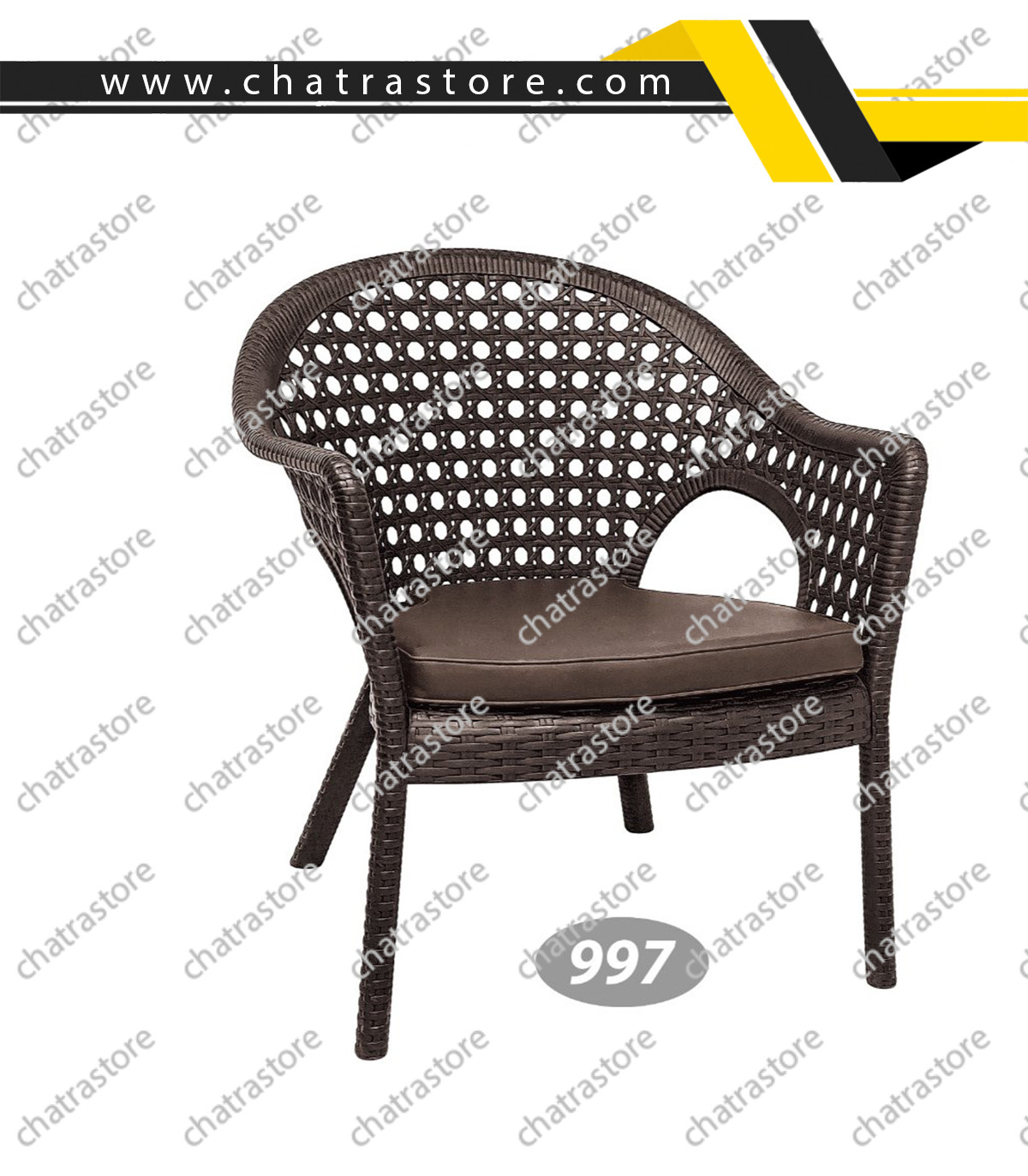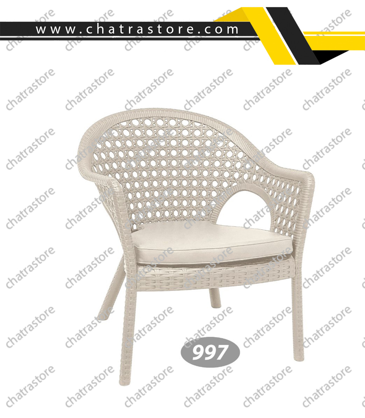 صندلی دسته‌دار حصیر بافت پلاستیکی ناصر کد 997 با طراحی شیک، وزن سبک و مقاومت بالا، انتخابی ایده‌آل برای کافه، تراس، باغ و محیط‌های بیرونی است. این محصول در بسته‌های ۳ عددی عرضه می‌شود.
