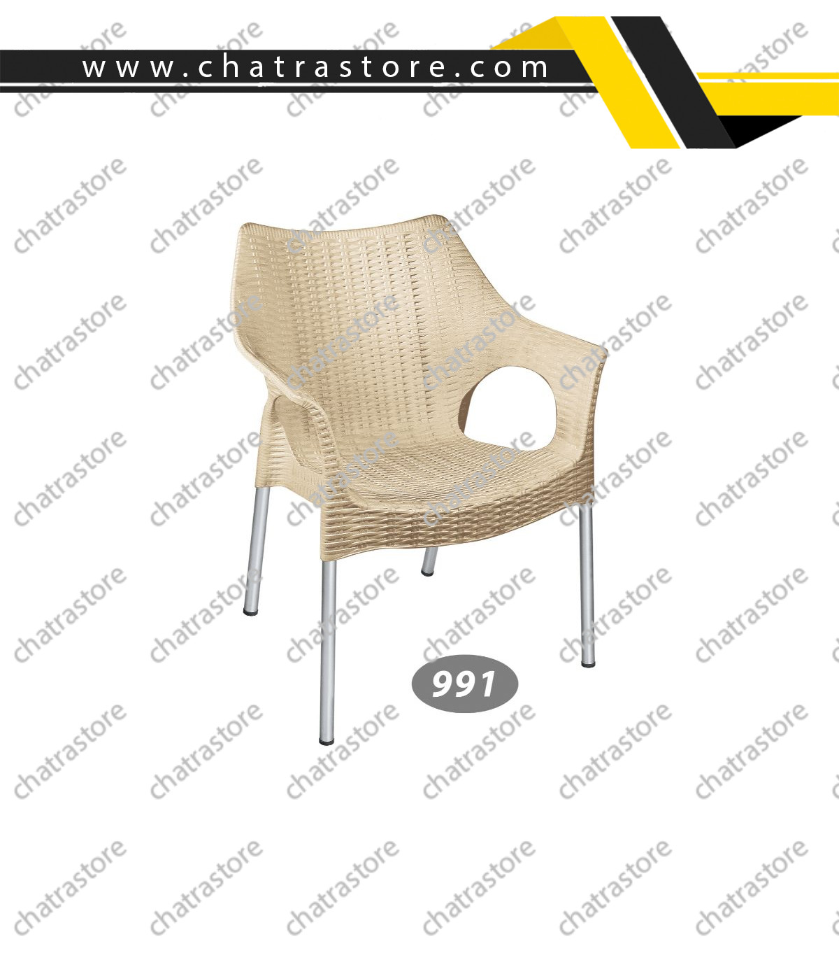 صندلی پایه فلزی حصیربافت ناصر پلاستیک کد 991 با ترکیب طراحی سنتی حصیربافت و ساختار مدرن فلزی، انتخابی ایده‌آل برای استفاده در فضاهای بیرونی و داخلی است. پشتی و نشیمن‌گاه پلاستیکی با ظاهر بافت حصیر، ضمن ایجاد زیبایی، به‌راحتی قابل شست‌وشو است. پایه‌های فلزی این صندلی ثبات و استحکام بالا را تضمین می‌کنند و رنگ‌بندی متنوع آن، امکان هماهنگی با هر نوع دکوراسیون را فراهم می‌سازد.