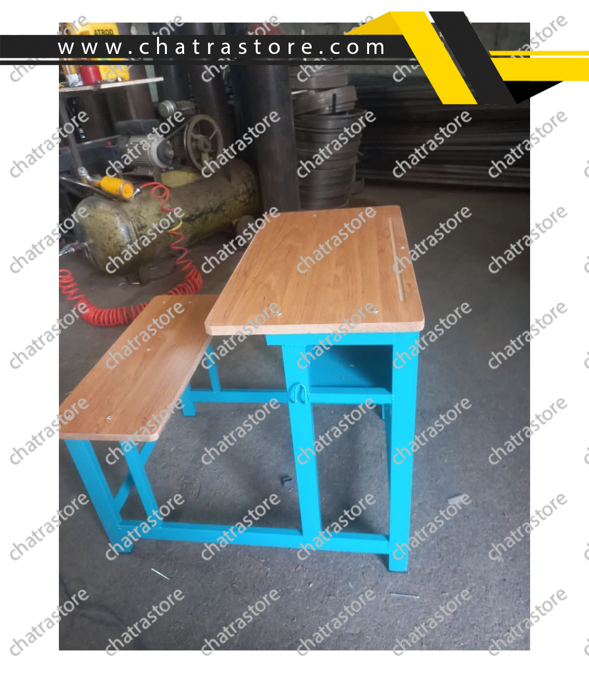 این میز و نیمکت دو نفره با ابعاد استاندارد آموزشی طراحی شده و به راحتی در کنار دیگر تجهیزات از جمله نیمکت و صندلی تحصیلی چیده میشود.
