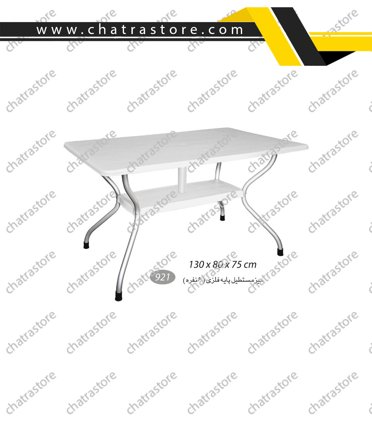 🛍 مشاهده و خریدمیز مستطیل پایه فلزی ناصر پلاستیک مدل 921 یک میز ایدهآل برای محیطهای خانوادگی و تجاری است. این میز با ابعاد طول 130 سانتیمتر، عرض 80 سانتیمتر و ارتفاع 75 سانتیمتر طراحی شده و مناسب استفاده ۶ نفر میباشد.