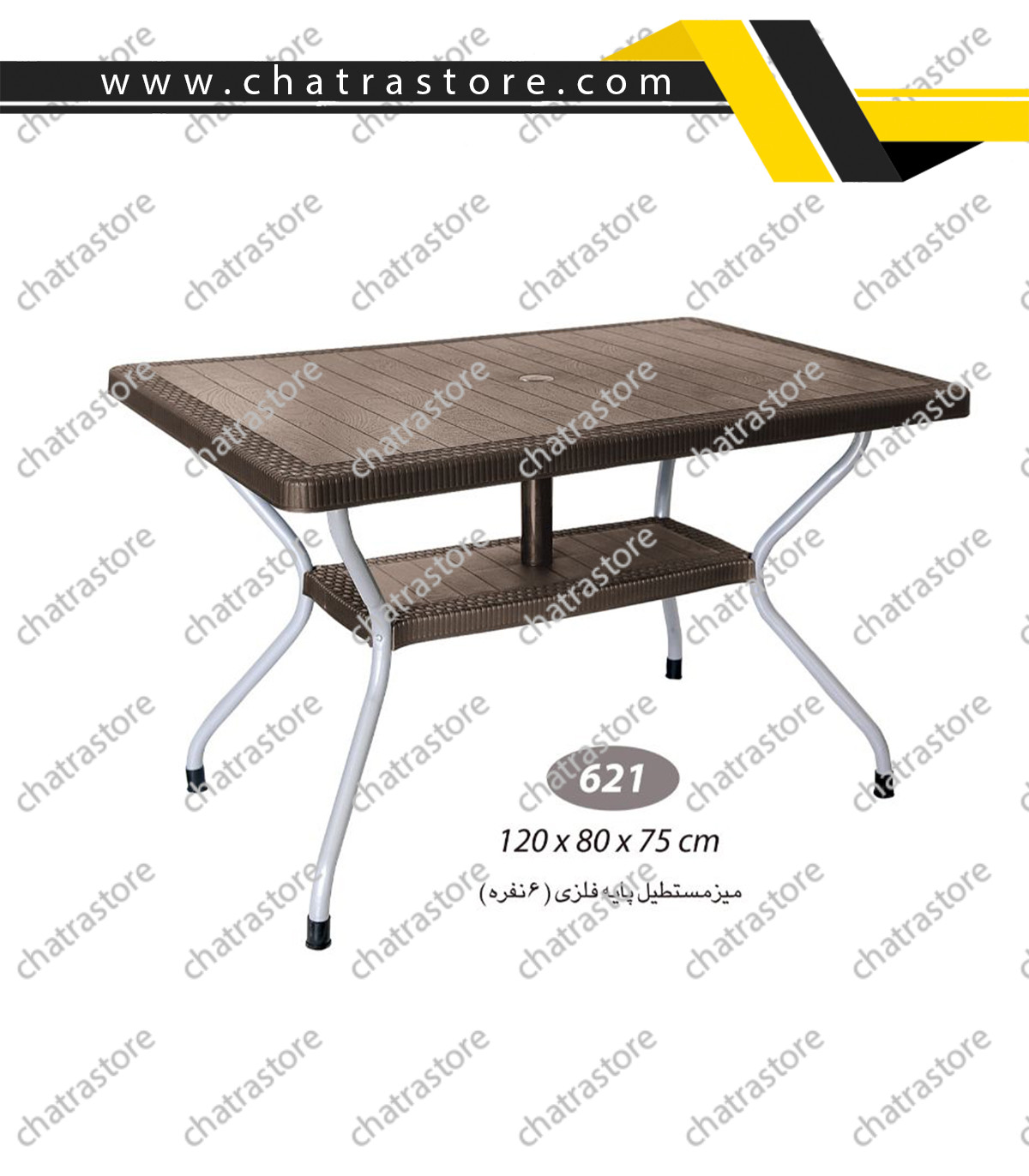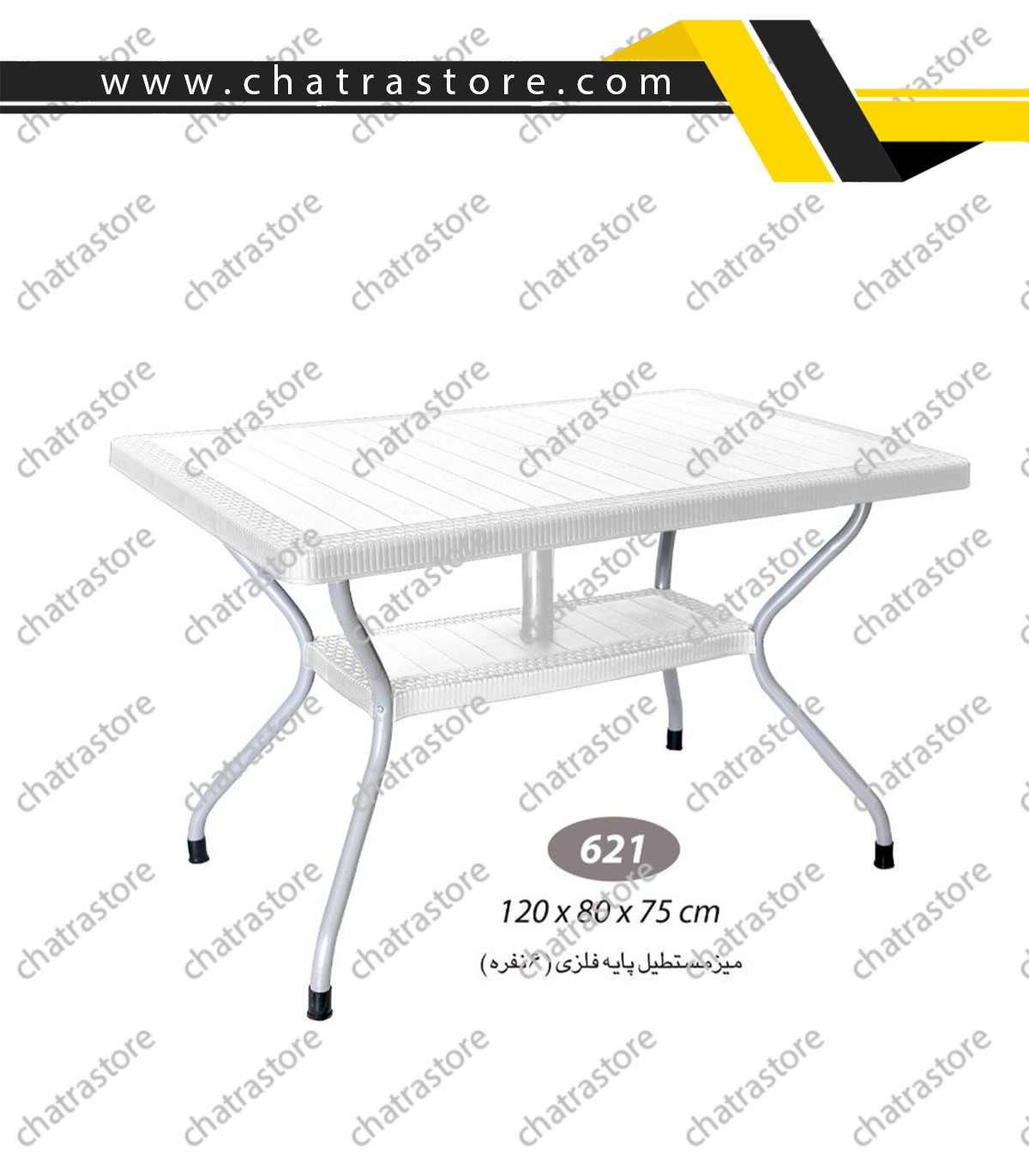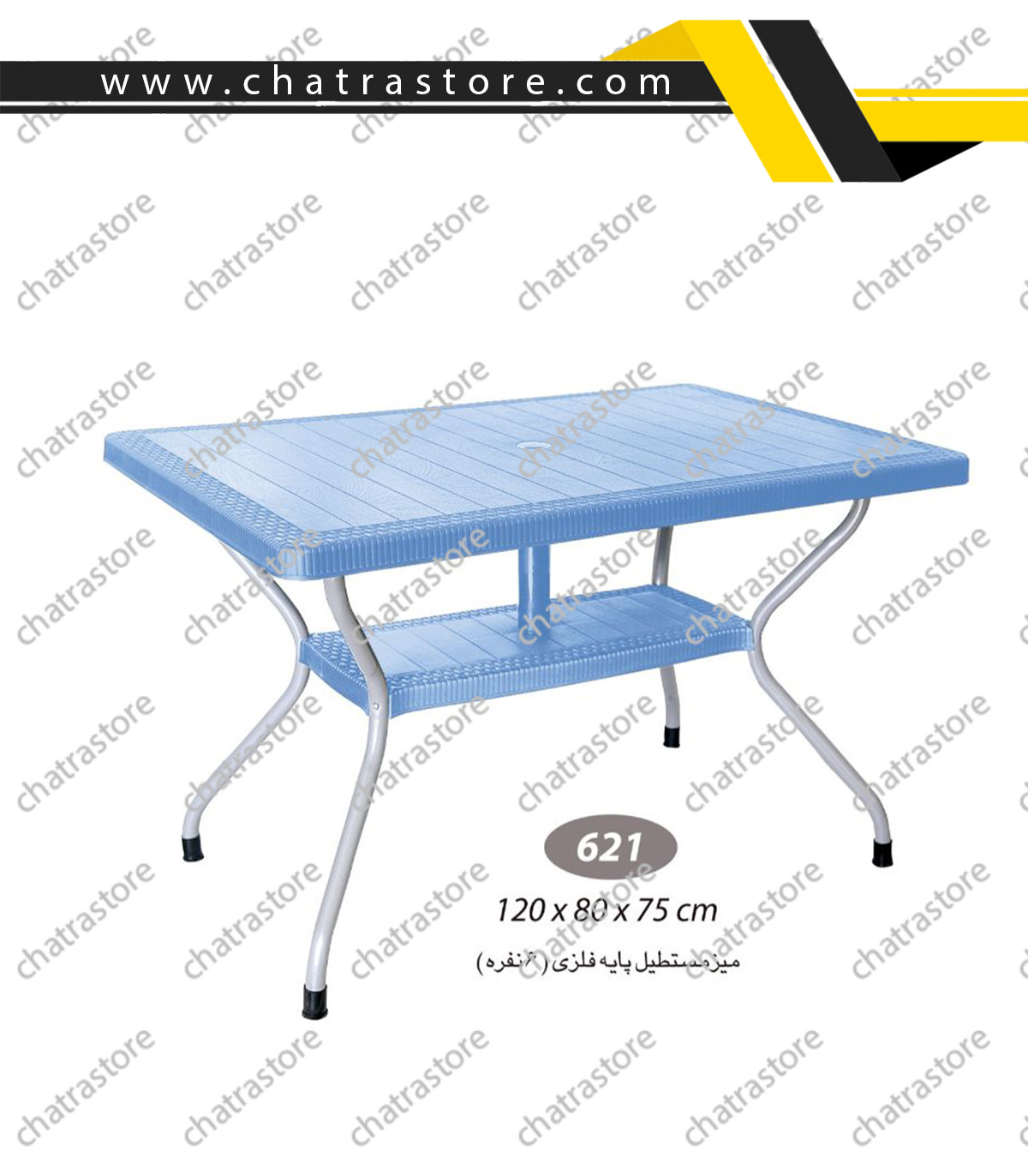🛍 مشاهده و خریدمیز مستطیل حصیربافت پایه فلزی ناصر پلاستیک مدل 621 یک میز شیک و مقاوم است که طراحی آن از بافت حصیری الهام گرفته شده و جلوهای مدرن و جذاب به محیط میبخشد. این میز با ابعاد طول 120 سانتیمتر، عرض 80 سانتیمتر و ارتفاع 75 سانتیمتر، مناسب استفاده روزمره در محیطهای مختلف خانگی و تجاری است.