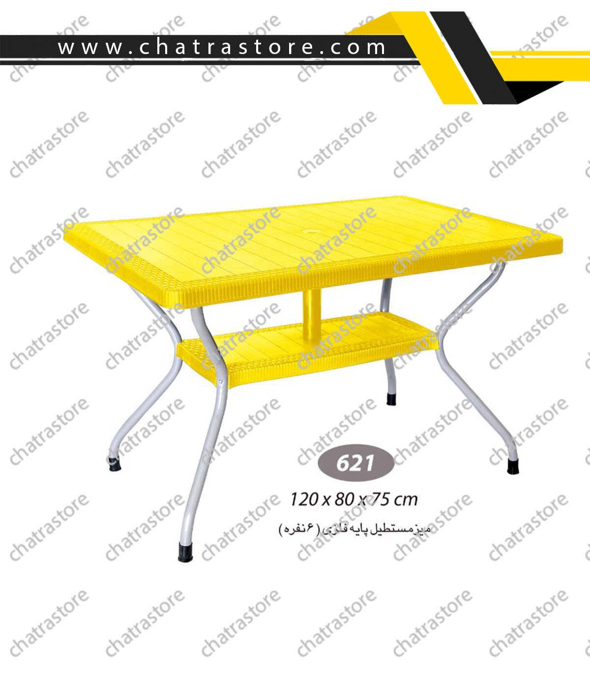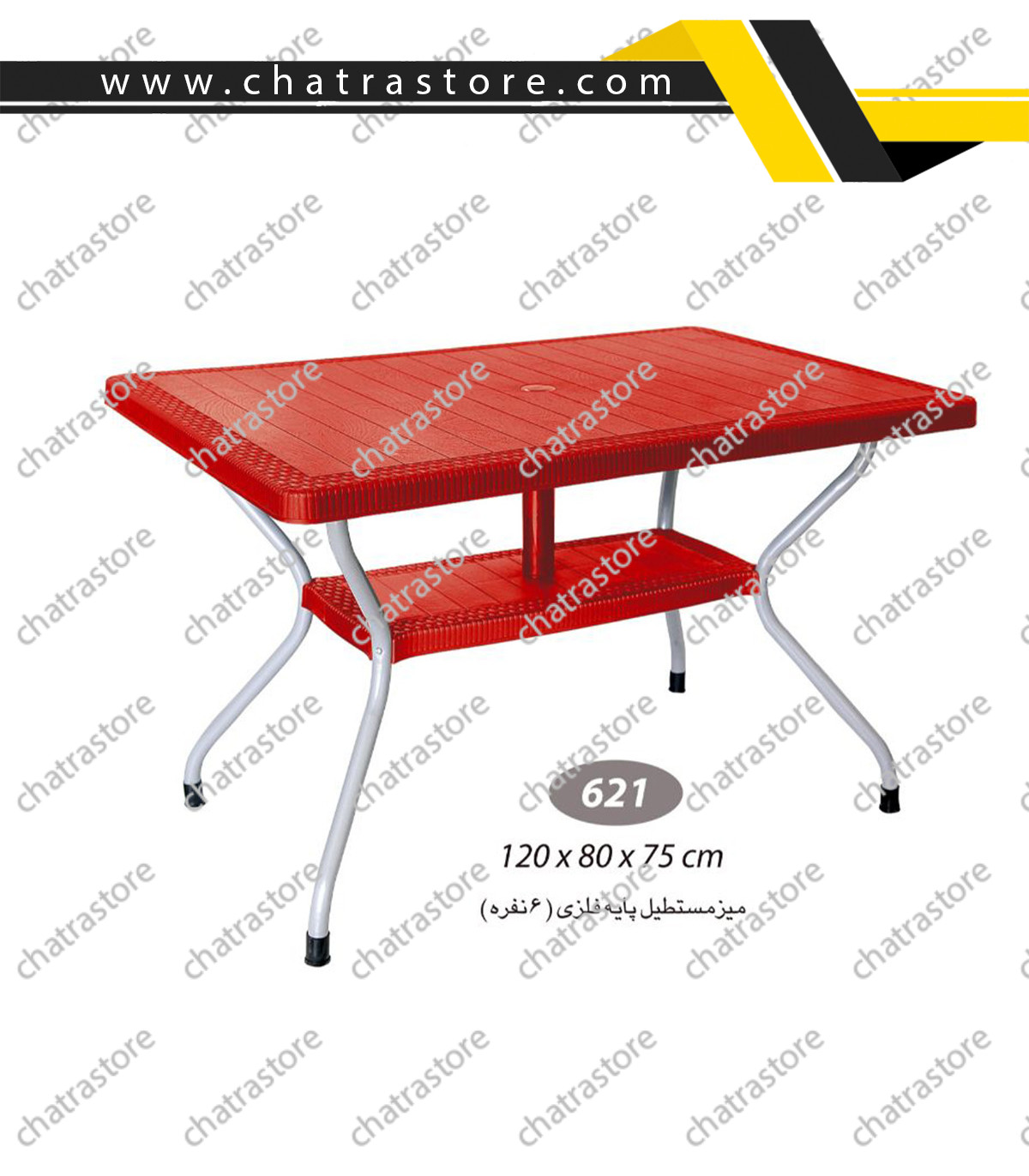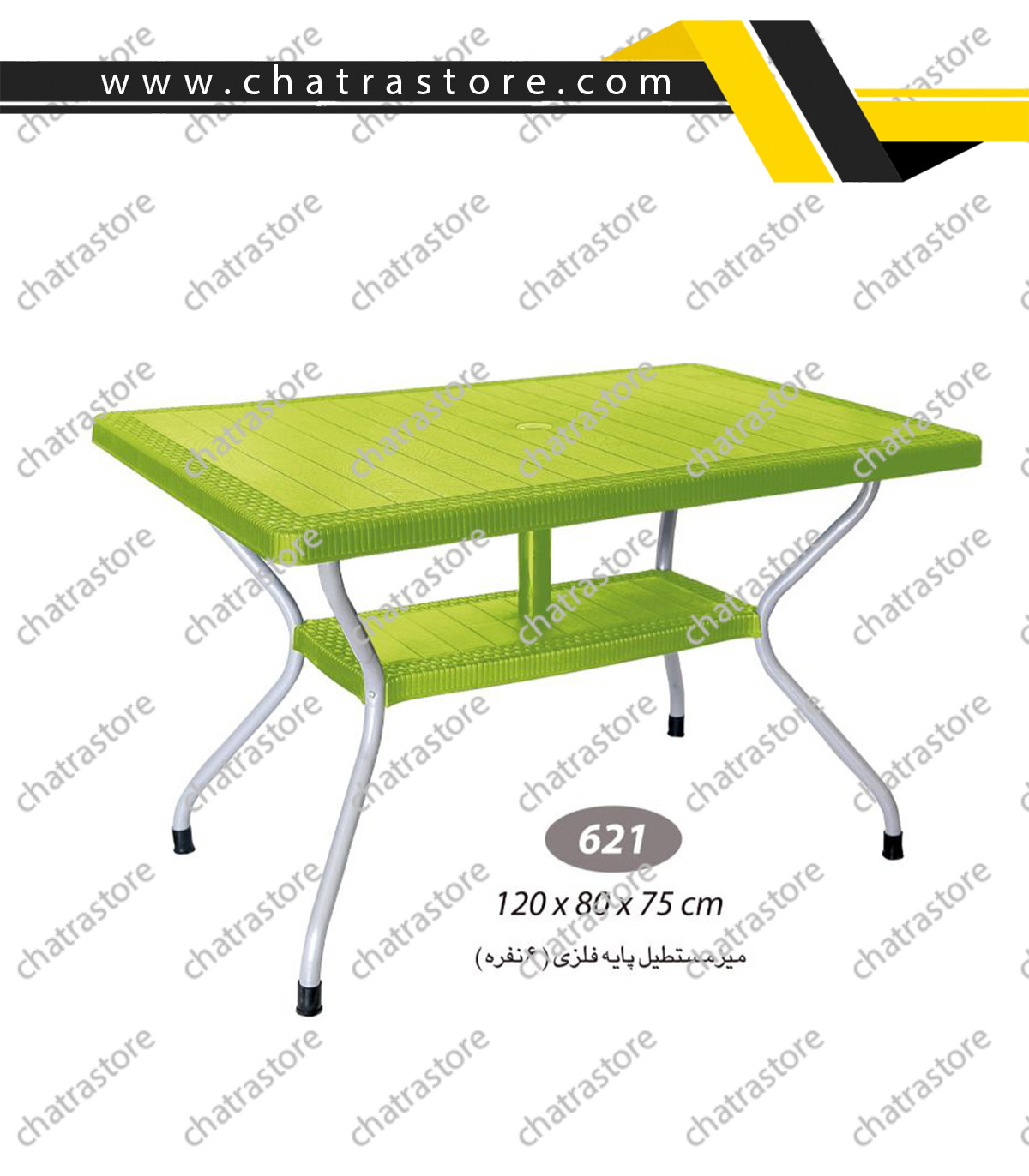🛍 مشاهده و خریدمیز مستطیل حصیربافت پایه فلزی ناصر پلاستیک مدل 621 یک میز شیک و مقاوم است که طراحی آن از بافت حصیری الهام گرفته شده و جلوهای مدرن و جذاب به محیط میبخشد. این میز با ابعاد طول 120 سانتیمتر، عرض 80 سانتیمتر و ارتفاع 75 سانتیمتر، مناسب استفاده روزمره در محیطهای مختلف خانگی و تجاری است.
