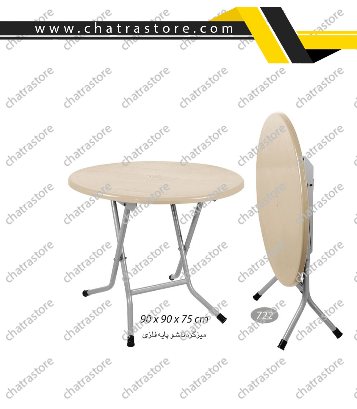 معرفی میز گرد تاشو پایه فلزی برند ناصر پلاستیک کد 722